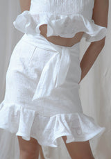 Ruffle skirt with tie front detail made with textured cotton, lined