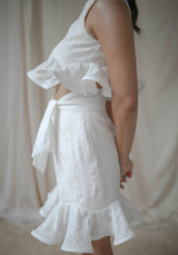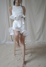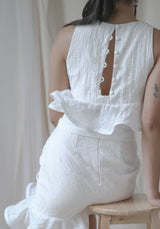 Cropped ruffle top made with textured cotton, lined