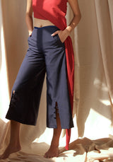 Everyday tailored culottes made from linen with signature slit, ribbon and button details, fully lined + with pockets