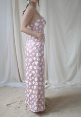 Full-length floral daysuit made with printed organza, fully lined with pockets
