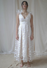 Floral midi dress with box pleat detail made with printed organza, fully lined