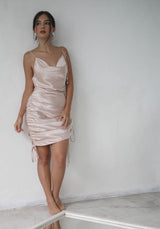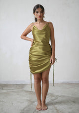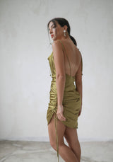 Sultry adjustable dress with tie and button details made with silk, fully lined