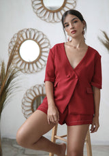 Tailored shorts with with signature button and stitch details made with linen, fully lined + with pockets