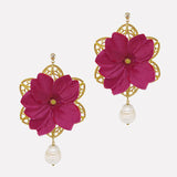 Handmade delicate floral earrings with silk blooms