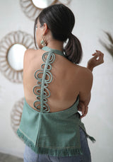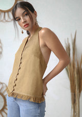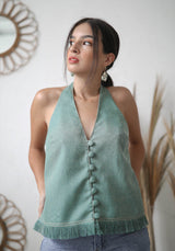 Button down top with fringe, slit and signature loop detail made with linen, fully lined