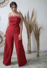 Full-length daysuit with signature loop detail made with linen, lined and padded